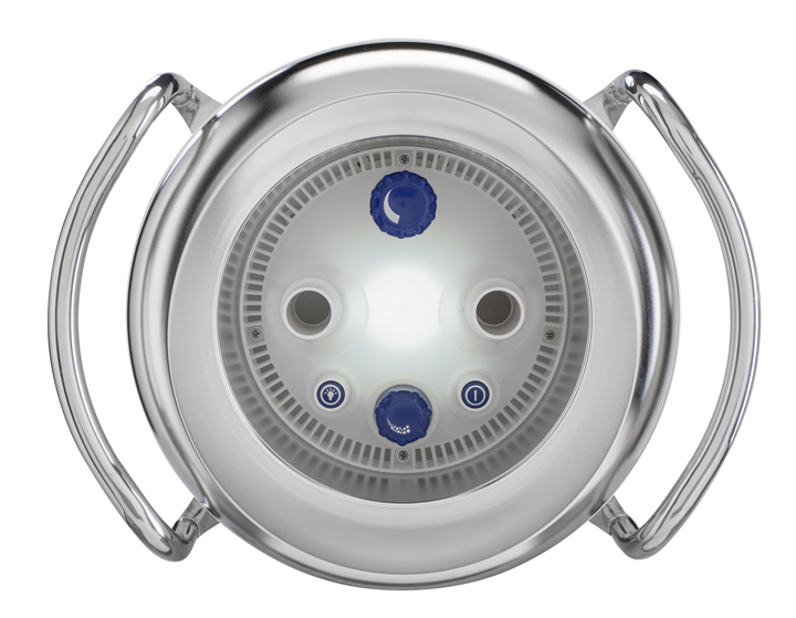 Die leistungsstarke Einbau-Gegenstromanlage BADU-JET Primavera Deluxe bietet aus zwei schwenkbaren Düsen einen stufenlos regulierbaren Volumenstrom.