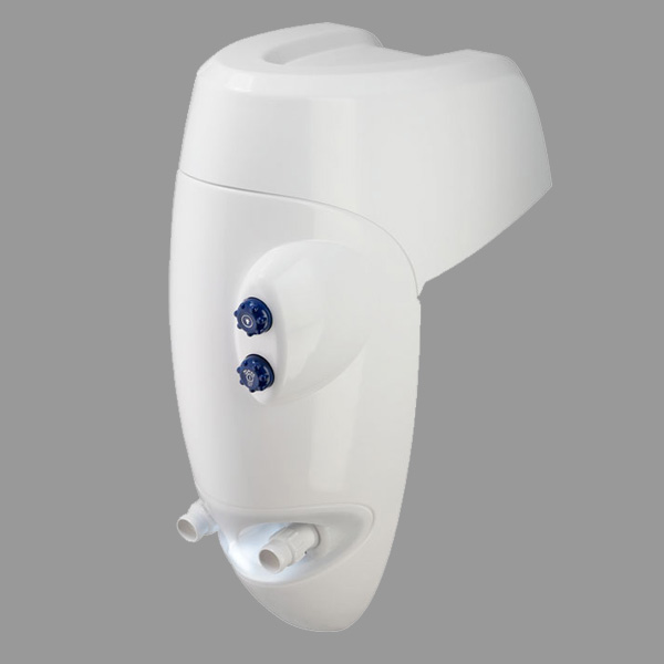 Durch die Ansaugöffnungen an der Unterseite der Anlage wird mit einer leistungsstarken BADU Pumpe Schwimmbadwasser angesaugt und mit einem kräftigen Strahl über zwei regelbare Düsen in den Pool zurückgeführt.