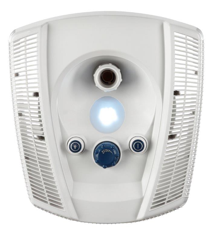 Für ein wohliges Ambiente sorgt eine eingebaute LED-Leuchte, die wie auch der pneumatische Ein-/Ausschalter und die Regelung für das prickelnde Luftperlbad vom Becken aus bedient werden können.