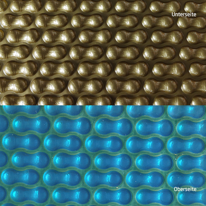 Durch die eingeschweißten Luftkammern kann durch Solar-Effekt tagsüber eine Aufheizung von ca. 5 - 9° C erreicht werden.